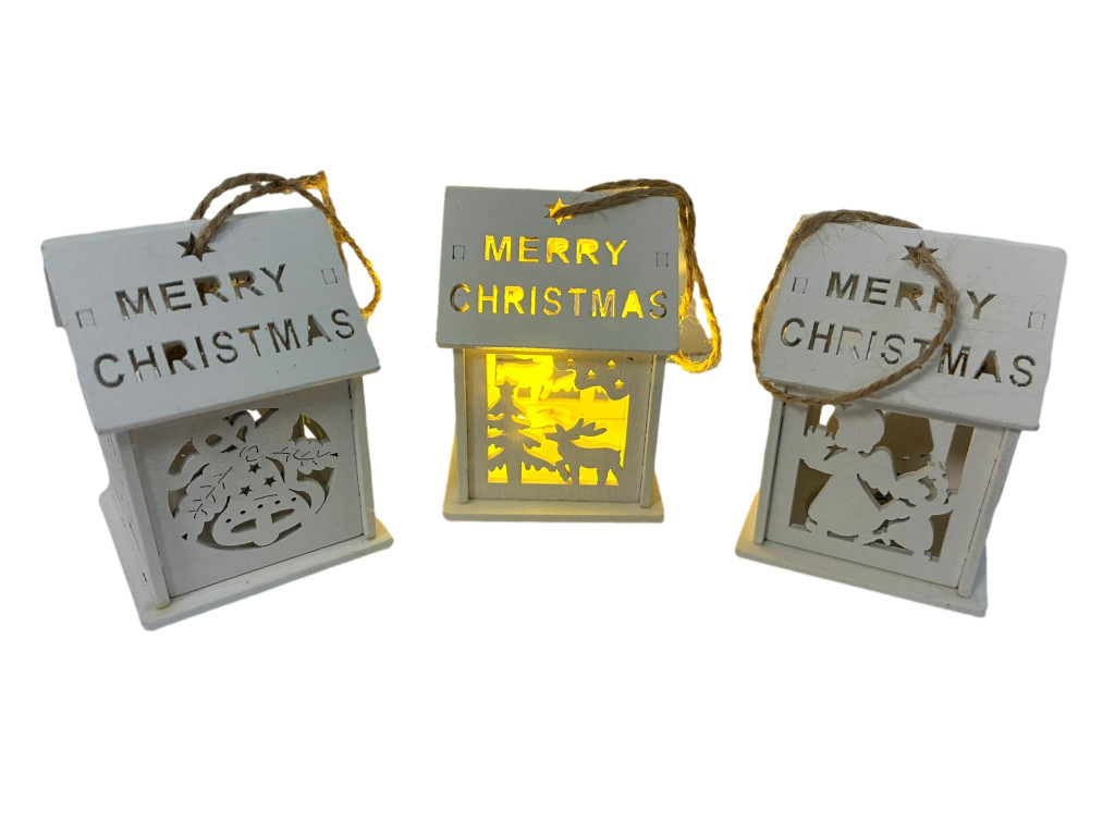FEHÉR KARÁCSONYI HÁZIKÓ LEDVILÁGÍTÁSSAL