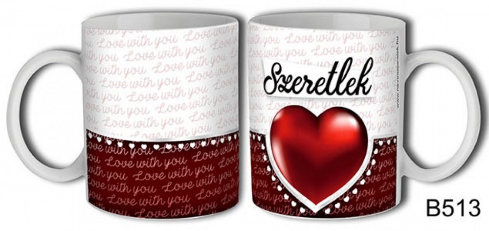 SZÍV MINTÁS KERÁMIA BÖGRE SZERETLEK FELIRATTAL