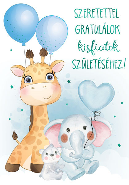 ÜDVÖZLŐLAP BORÍTÉKKAL BABASZÜLETÉSRE, ZSIRÁFOS, KÉK