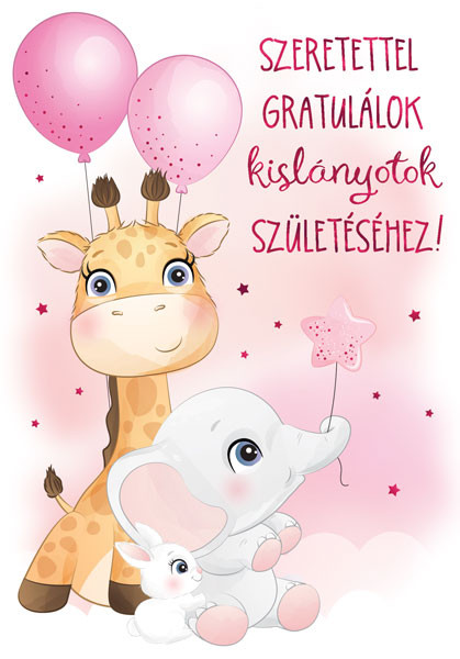 ÜDVÖZLŐLAP BORÍTÉKKAL BABASZÜLETÉSRE, ZSIRÁFOS, RÓZSASZÍN