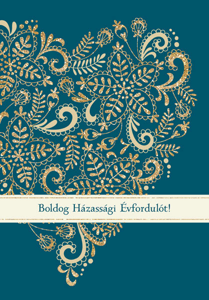 ÜDVÖZLŐLAP BORÍTÉKKAL ÉVFORDULÓRA , ZÖLDESKÉK