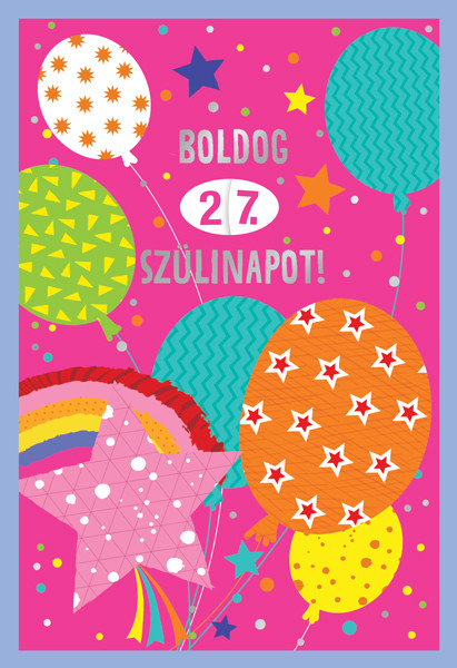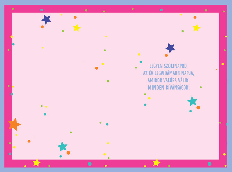 ÜDVÖZLŐLAP BORÍTÉKKAL SZÜLETÉSNAPRA ÁLLÍTHATÓ ÉVSZÁMMAL, RÓZSASZÍN LUFIS