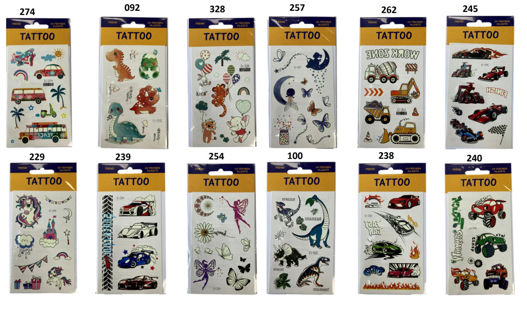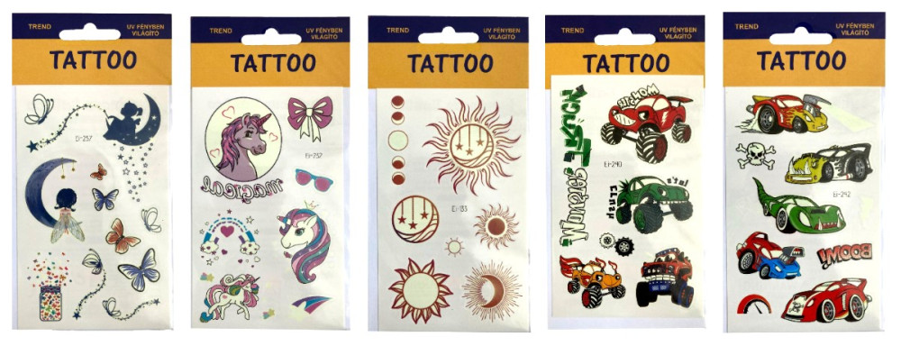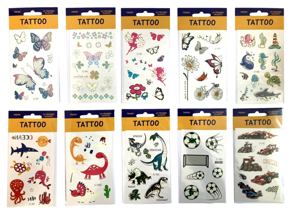 UV FÉNYBEN VILÁGÍTÓ TETOVÁLÁS TÖBBFÉLE MINTÁVAL